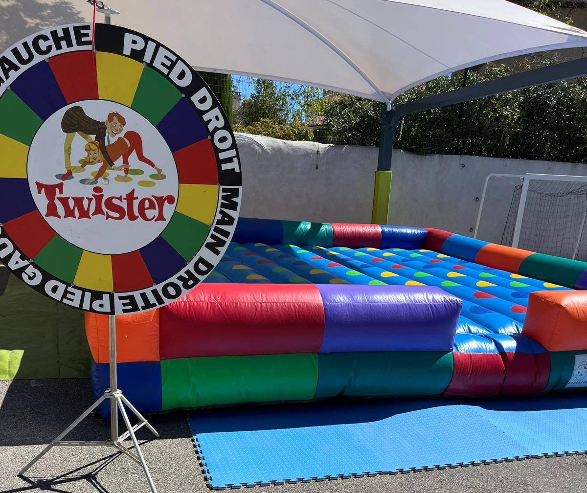 Vous cherchez une animation originale et intergénérationnelle pour dynamiser vos événements en région PACA ? Le Twister XXL gonflable, accompagné de sa roue géante, est l'activité idéale pour rassembler petits et grands dans une ambiance conviviale et pleine de rires ! Parfait pour anniversaires, kermesses, fêtes d’entreprise ou soirées entre amis, ce jeu mythique revisité en format géant promet des moments mémorables.