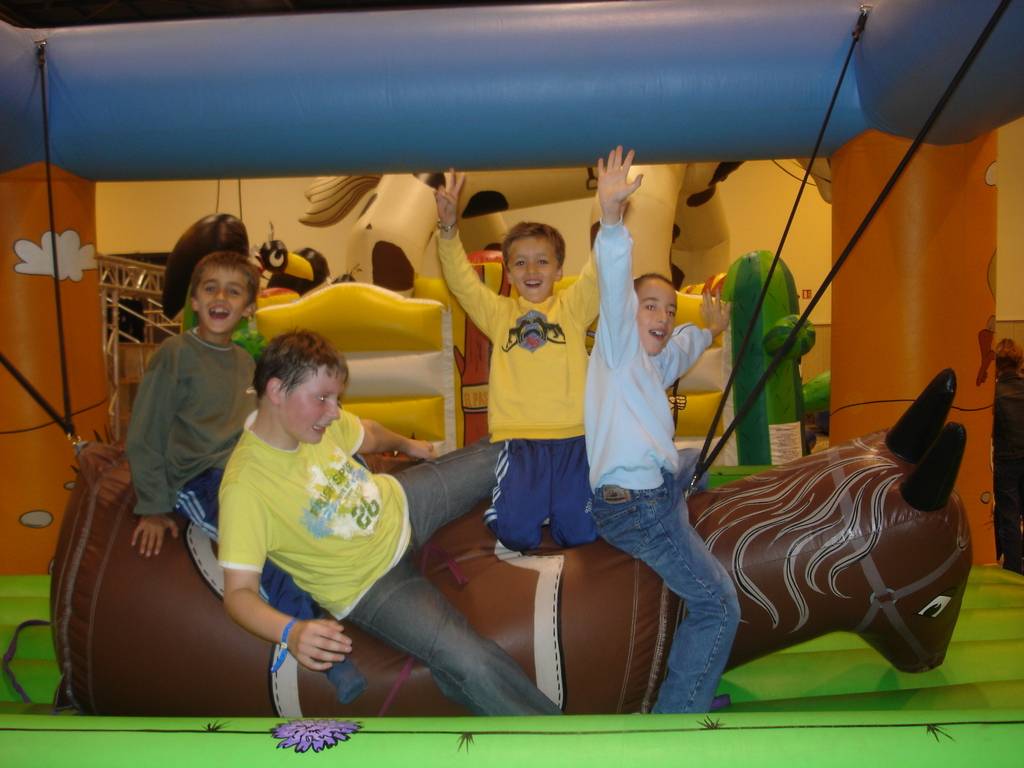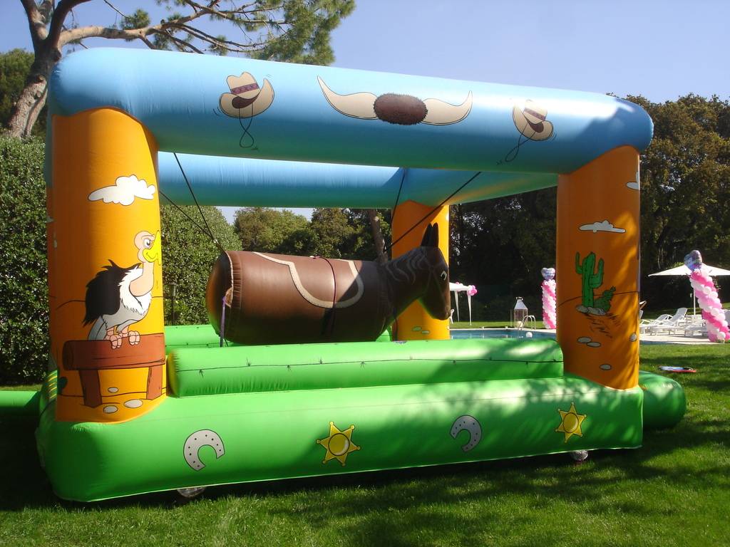 Plongez dans l’univers du Far West avec notre Rodéo Élastique, une structure gonflable au thème Western qui mettra à l’épreuve votre équilibre et votre résistance. Le concept est simple : le cavalier s’installe sur un cheval suspendu à quatre élastiques, tandis que les autres participants tentent de le faire tomber en tirant sur les cordes. Qui tiendra le plus longtemps en selle ?