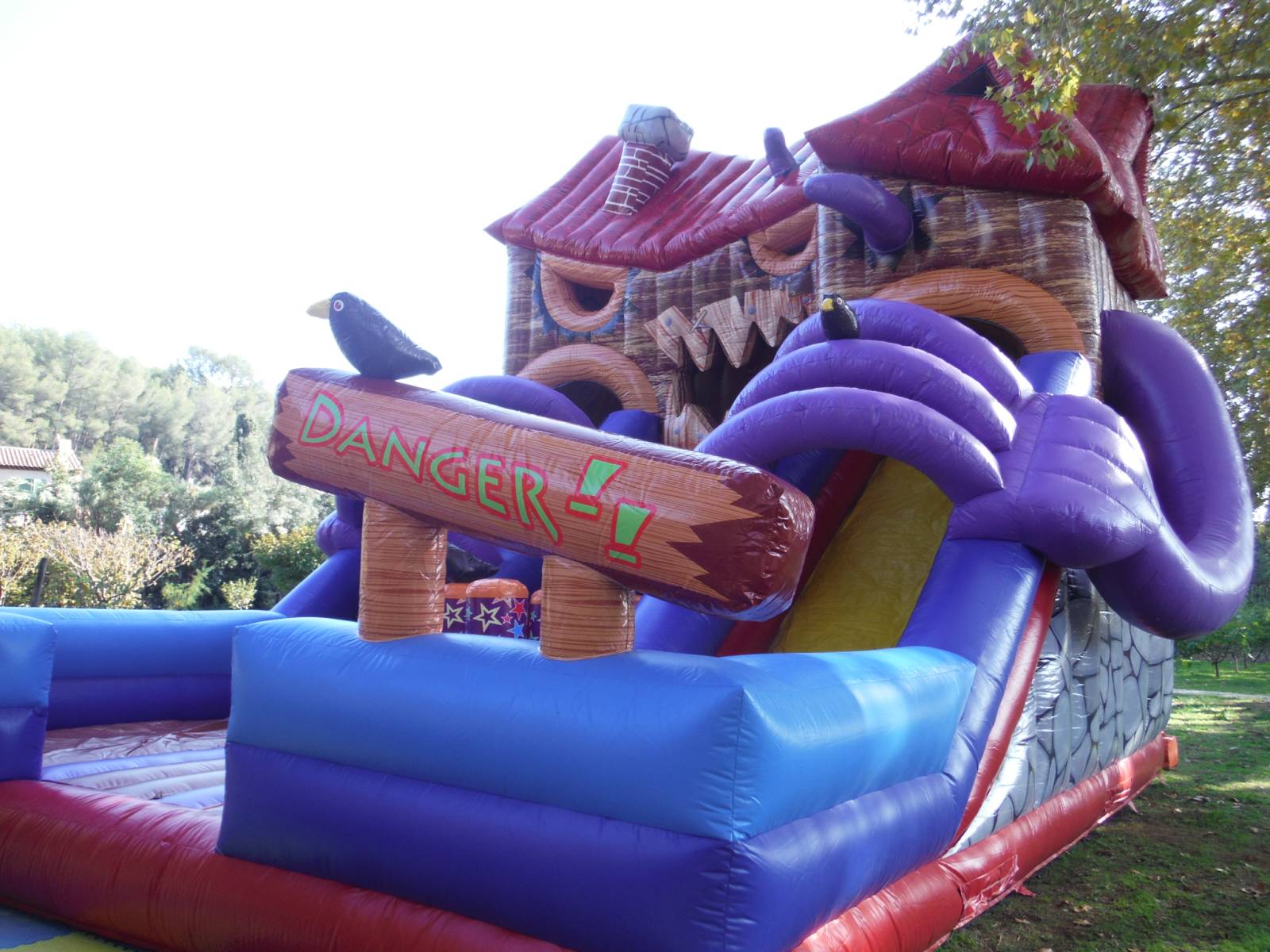 Cette structure gigantesque équipée d'un toboggan promet une expérience inoubliable lors de vos événements spéciaux. Avec ses illustrations vibrantes et son design terrifiant, ce château gonflable offre une expérience à la fois effrayante et amusante.