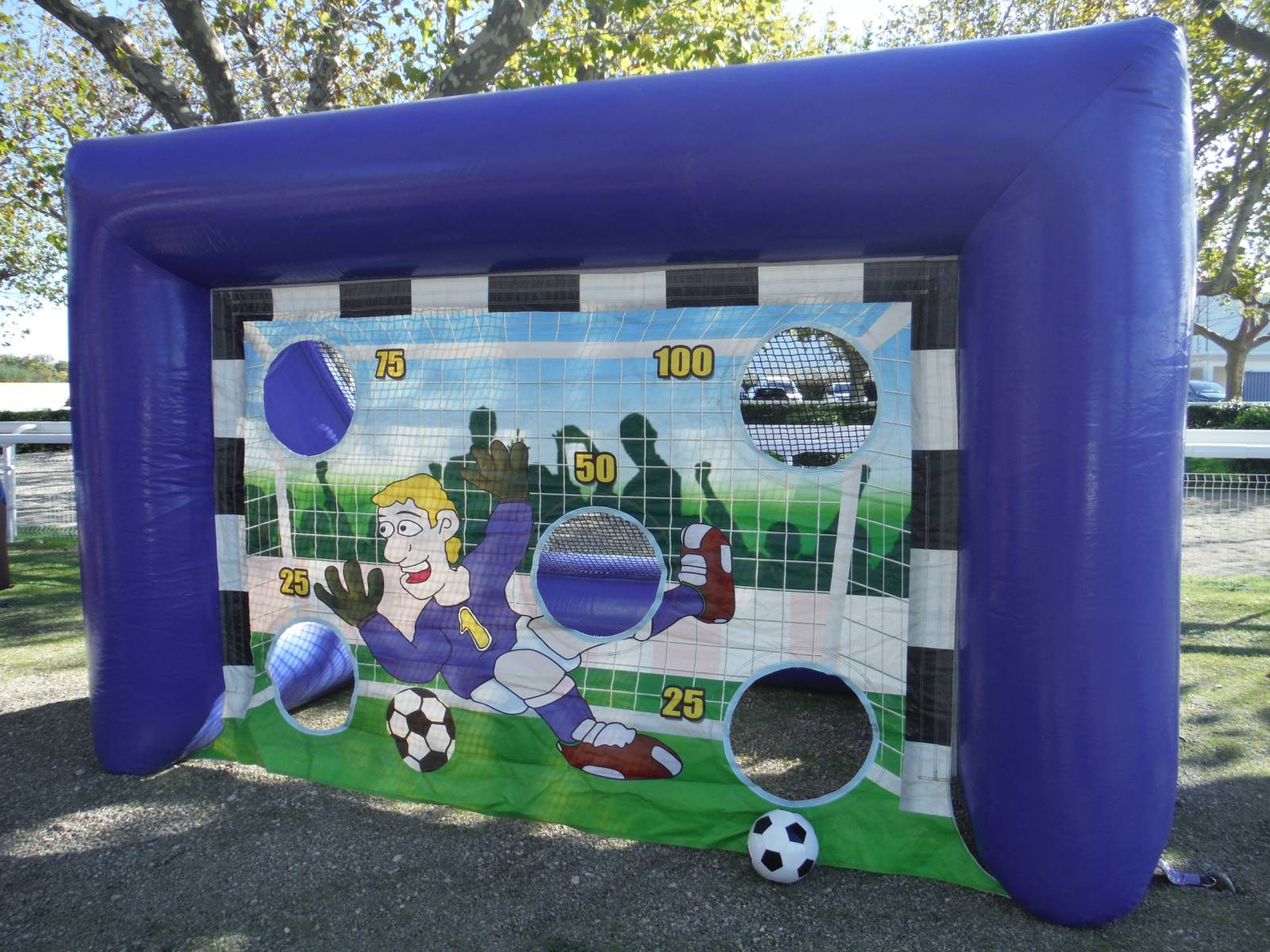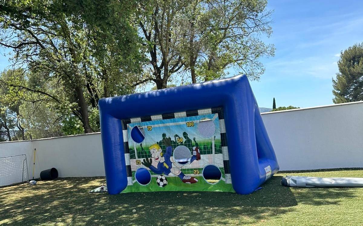 Introduisant La Cage de Foot, l'animation sportive gonflable parfaite pour les fans de football proposée en location par Starkit Événements. Idéale pour les CSE, entreprises et mairies, cette structure est conçue pour les passionnés de tous âges désirant perfectionner leur technique de tir au but dans une ambiance ludique et compétitive.