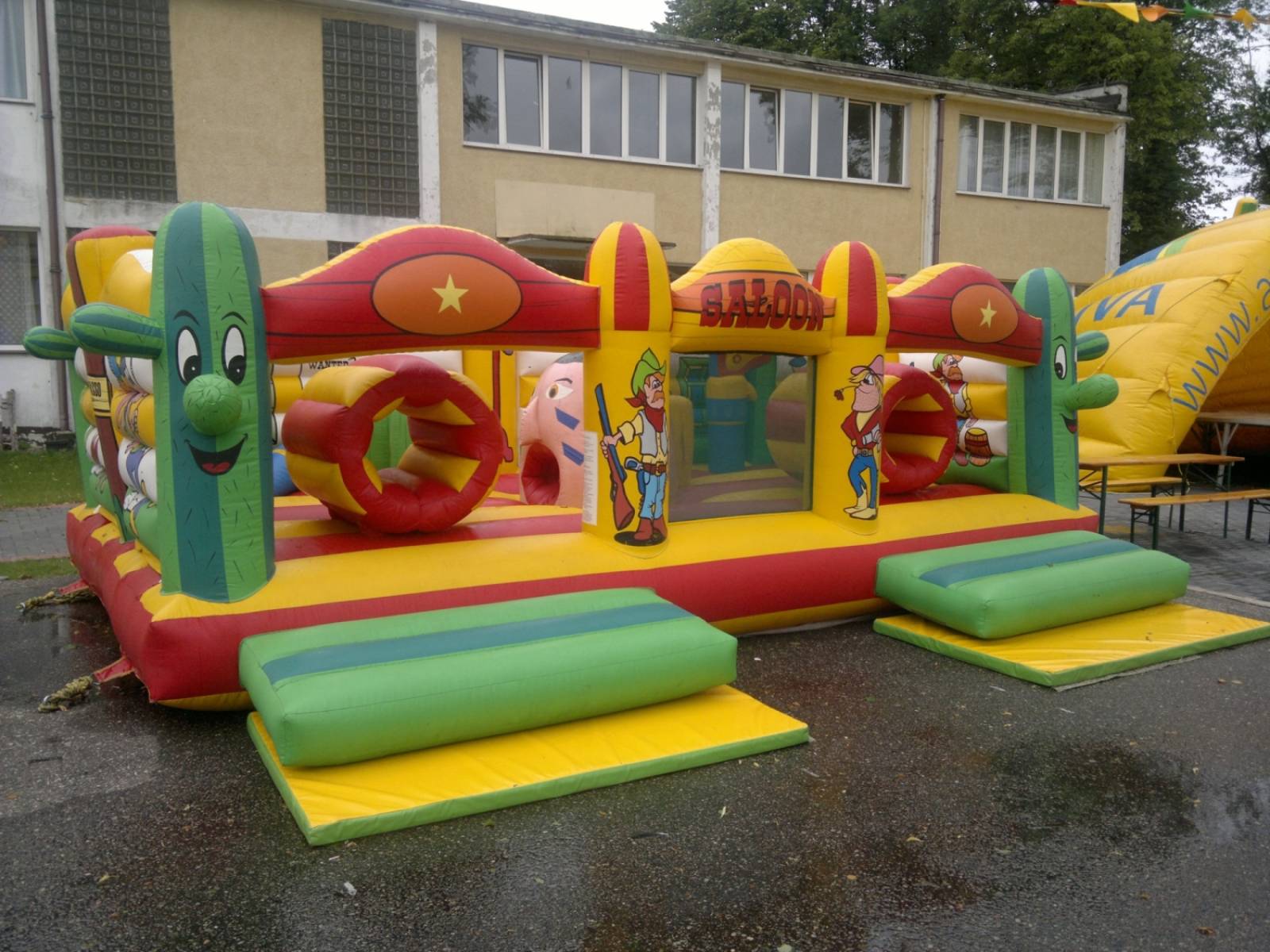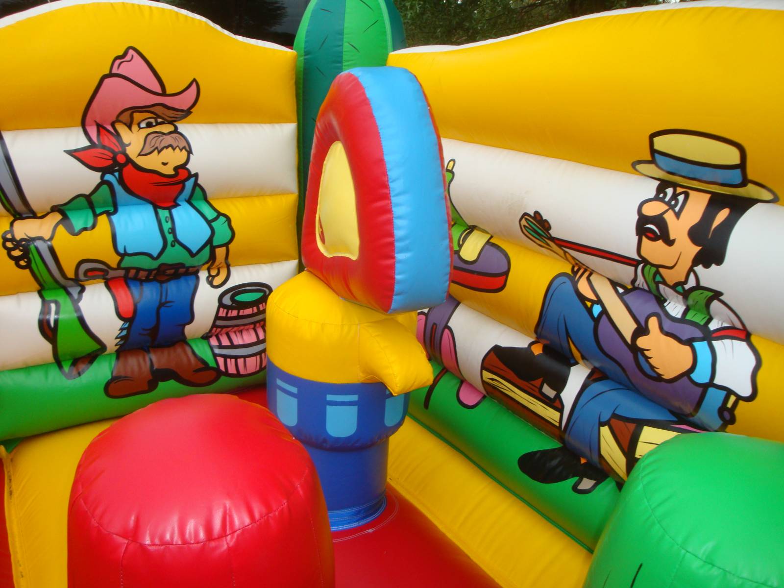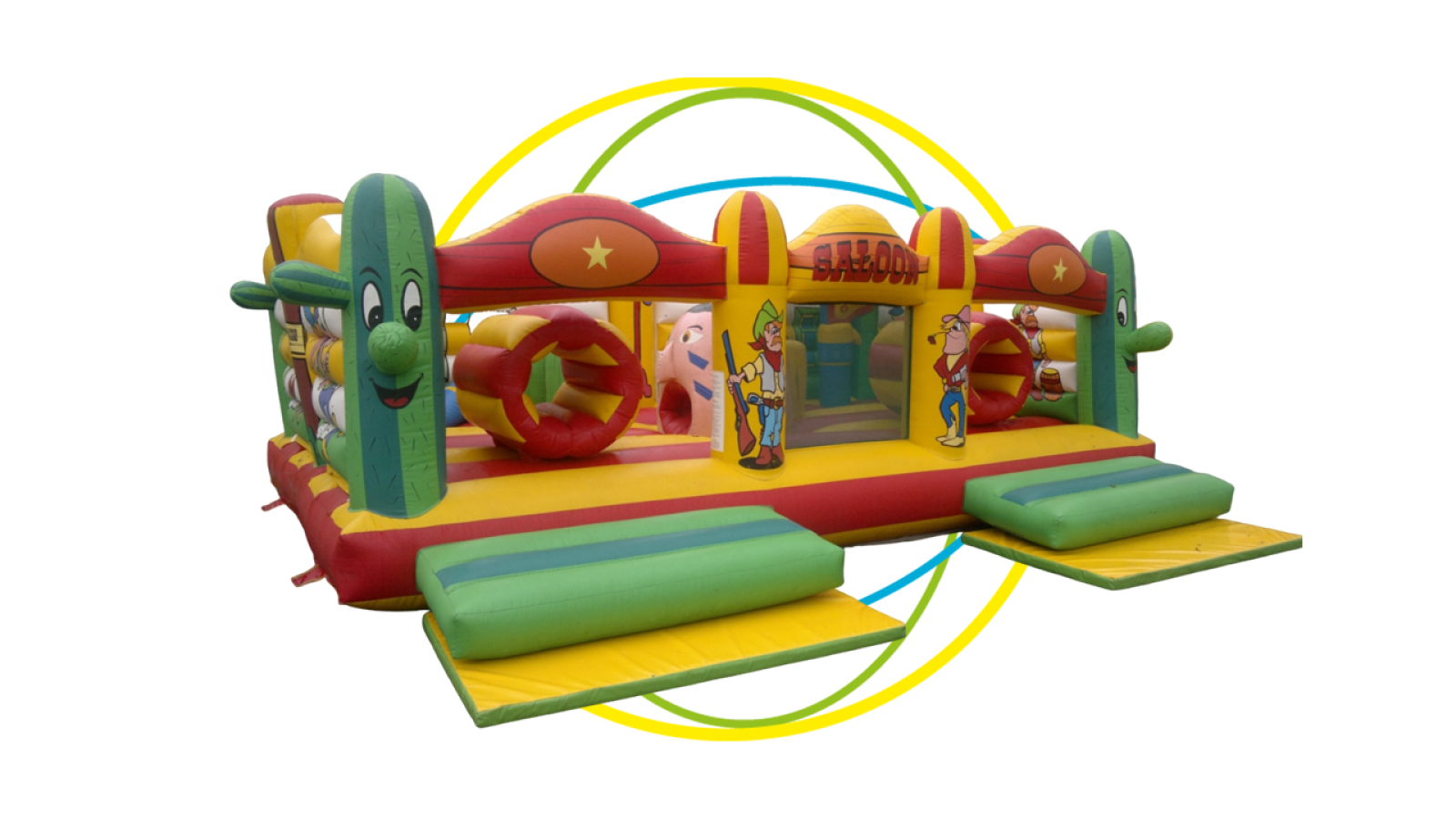 Le Saloon invite à un divertissement dynamique avec ses couleurs vives, ses cactus amicaux et ses personnages de western. Les enfants peuvent sauter, jouer et s'imaginer en héros de la frontière dans ce château gonflable riche en activités. De la poursuite autour des cactus jusqu'aux glissades dans le saloon, les petits aventuriers trouveront une variété de jeux pour stimuler leur imagination.