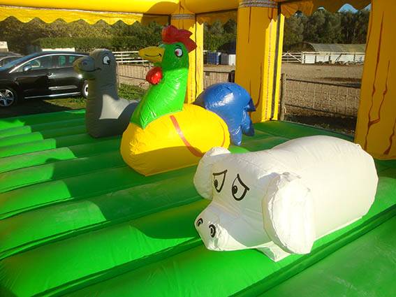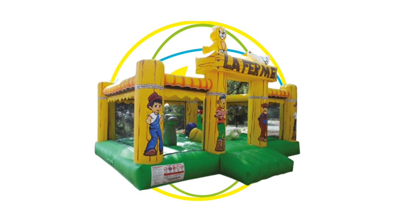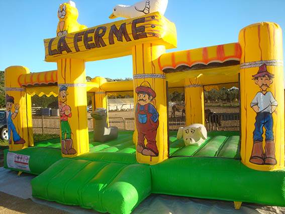 Avec ses murs en filet pour une surveillance optimale et sa variété d'éléments ludiques, Le Château La Ferme est l'attraction parfaite pour les fêtes d'anniversaire, les événements scolaires ou les journées en famille. Les enfants pourront s'immerger dans un monde agricole enchanté, interagissant avec les animaux de la ferme et les décors bucoliques, tout en développant leur imagination et leur motricité.